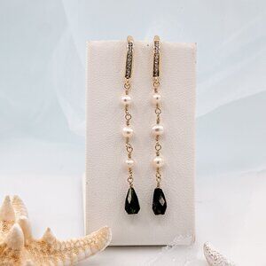 Tourmaline & Pearl Dangle Earrings, Dainty Handmade Earrings