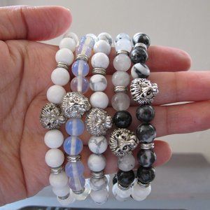 Tourmaline Quartz Beads Gemstone Bracelets Silver Lion Charm