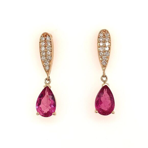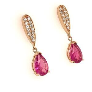 Natural Finely Faceted Quality Natural Tourmaline Rubellite Diamond Earrings 14k Gold 1.60 TCW Certified $3,090 018673