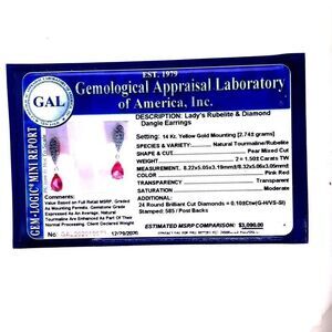 These Rubellite earrings have been Certified, Inspected, and Appraised by Gemological Appraisal Laboratory