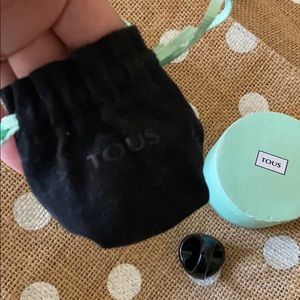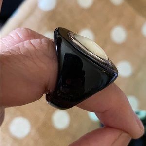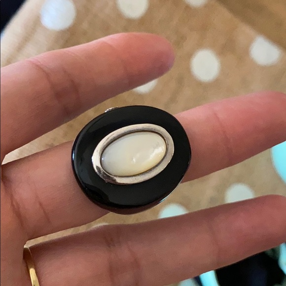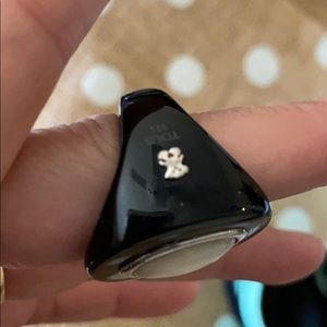 Mother of pearl black ring comes with dust bag and box EUC it’s 925 SS authentic ring 🐻 has logo bell charm on box super cute. Rare piece and vintage