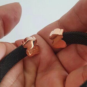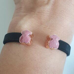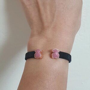 Tous Black IP Steel Mesh Color Cuff Bracelet with Rhodonite