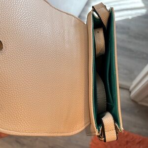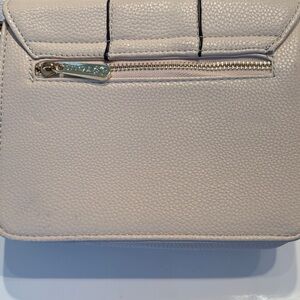 Stylish cream bag with iconic gold bear detail. Perfect for any occasion.