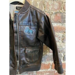 -Tout Compte Fait- bébé Dark Brown Faux Leather Baby Bomber Jacket with Zebra Em