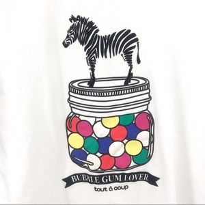 Tout a Coup Bubblegum Lover Tee Sz M. The zebra is velveteen Cute. Preowned, no flaws