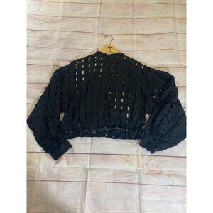 Tov Los Angeles Women's Black Cut Our Long Sleeve Pull Over Crop Top - 44