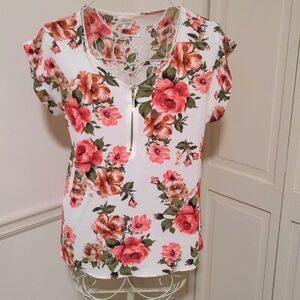 Tovia Floral Top V-neck Short sleeves Good condition