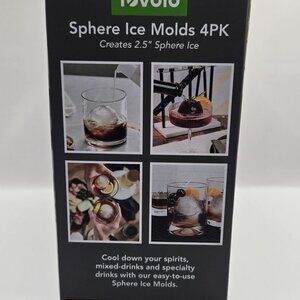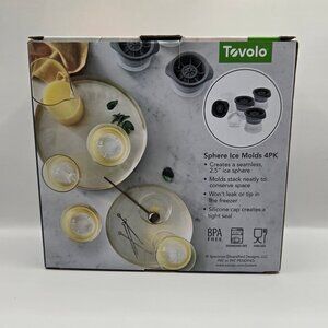 Tovolo Sphere Ice Molds, set of 4. Condition: new in box. This clear ice system is designed to create perfectly round, crystal-clear ice spheres that elevate any drink. The insulated mold controls the freezing process by pushing oxygen into the bottom tray, leaving you with four seamless 2.5-inch ice spheres.