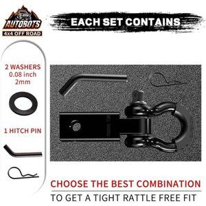 🧿🔧 2" Hitch Receivers with 3/4 D-ring Shackle: The Tow Hitch Receiver is made of carbon steel with a rated working load of 11,000 lbs and a breakpoint of 45,000 lbs. Black silicone isolators to prevent scratching when mounted. This shackle hitch receiver accessory is suitable for all towing applications.