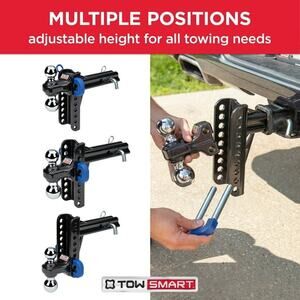 The TowSmart Steel Adjustable Trailer Hitch is a versatile and durable towing accessory designed for car and truck use. With a dual ball design and X-mount feature, this hitch can accommodate various towing needs. The 2-inch receiver allows for easy attachment and detachment of trailers, making it a convenient option for hauling purposes. The sturdy steel construction ensures long-lasting performance, making it a reliable choice for all your towing adventures.