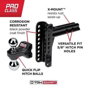 TowSmart Steel Adjustable Trailer Hitch, Dual Ball, X-Mount, 2-Inch Receiver