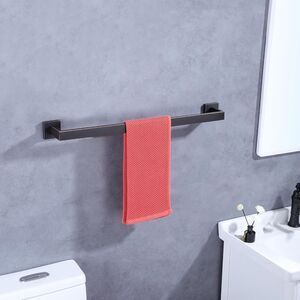 This 24" black towel bar is a modern and durable bathroom accessory made of metal. With an oil-rubbed finish, this square-shaped towel holder rod is rust and scratch resistant, making it a convenient and easy-to-install addition to your bathroom or kitchen. The screw-in installation type and wall-mounted design ensure a secure and stable hold for your towels. This 2-pack towel rack set is a stylish and functional option for keeping your towels organized and accessible in your home.