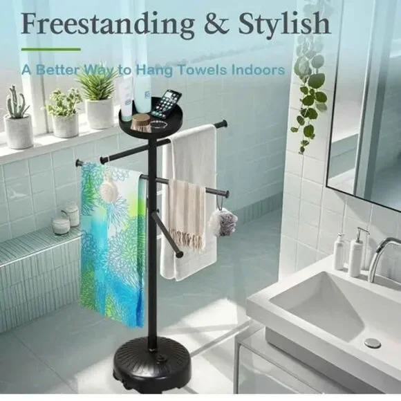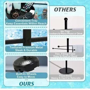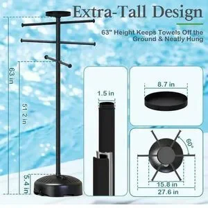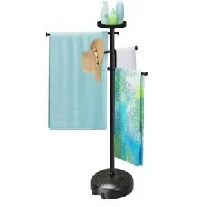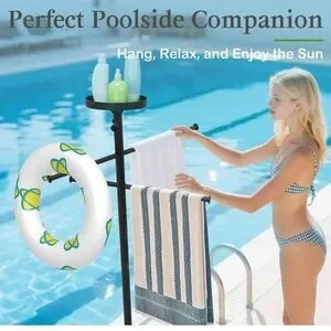 Pool Towel Rack Outdoor with Built-in Tray – Adjustable, Heavy-Duty Towel Racks & Storage for Backyards