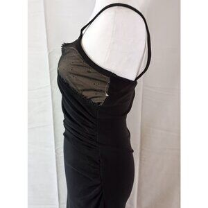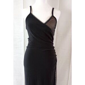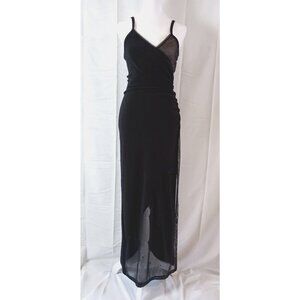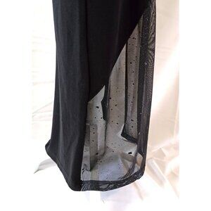 Tower USA Black Ruched Maxi Dress High Slit Sparkle Sheer Gown Women’s S