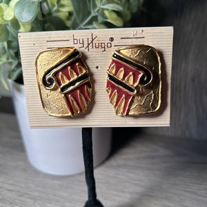 Tower of Pisa Retro Matte Gold Tone Red and Black Enamel 1.25 Clip On Earring