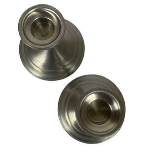 This pair of Towle Pewter candle holders showcases a classic brushed silvertone finish, perfect for adding a touch of traditional elegance to any setting.