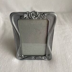 Display your cherished memories with this elegant silver picture frame, featuring intricate floral designs. Perfect for adding a touch of sophistication to any room.