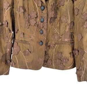 Town And Travel Blazer Brown 3D Floral Shimmer Size M Art To Wear Four Button
