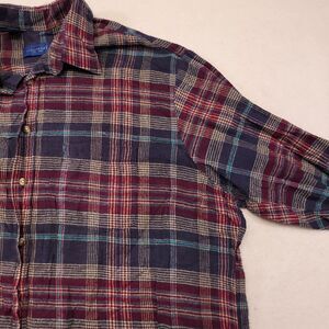 Town & Craft Madras Flannel Button Up Casual Shirt Mens Size XLT Blue Red