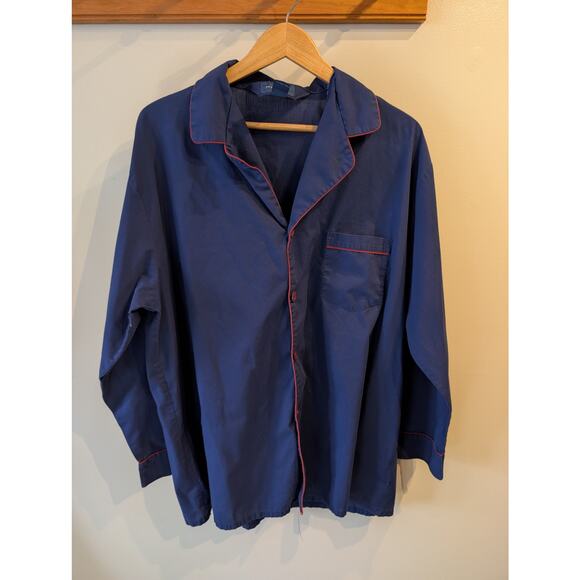 Town Craft Navy Burgundy Piping Pajama Top Eclectic Grandpa Vintage XL Tall