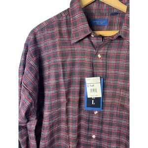 Towncraft Large Tall Flannel Shirt Mens NEW Dark Brown Red Plaid Tartan LT