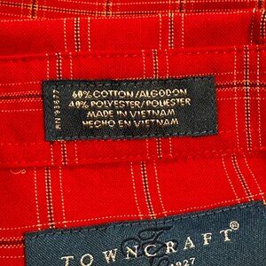 This Towncraft men's shirt features a classic red plaid design with a button-down style. Its wrinkle-free fabric ensures a polished look throughout the day.