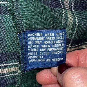 This Towncraft men's button-down shirt in size L (48 in chest) features a green plaid pattern, long sleeves, and a collared neckline with button closure. Made from 60% cotton and 40% polyester, the shirt is machine washable, wrinkle-free, and has a regular fit. It also includes a chest pocket and button accents, making it suitable for travel, casual, workwear, or business settings. With a classic, preppy style, this versatile shirt is perfect for all seasons.