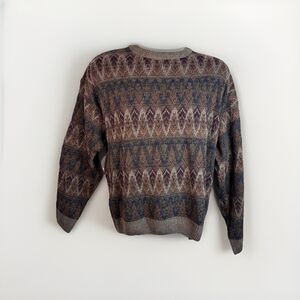 Towncraft Vintage Brown/Blue Wave geometric Men's Sweater Grandpa Dad size M