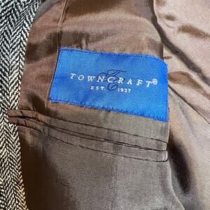 Towncraft Vintage Tweed Blazer Men's 40R 100% Silk Black White Herringbone. Two-button single-breasted men's sport coat / jacket.