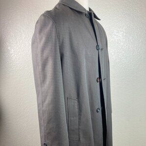 Step back into mid-century style with this vintage Towncraft by JCPenney men’s overcoat featuring a gray micro-check pattern and plush brown faux-fur lining. Designed for warmth and timeless appeal, this single-breasted coat has a three-button front, angled hand pockets, and a rear vent for ease of movement.