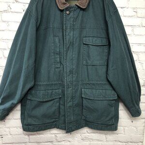 Towne By London Fog Forrest Green Canvas Barn Chore Parka Coat Jacket Sz XL Long