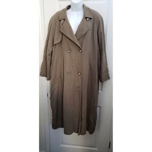 Towne By London Fog Women's Rain Trench Coat Green Buttons Vented Notch Lapel 16