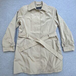 Towne Collection Womens Size L Khaki Trench Coat Belted Padded Shoulder NWT