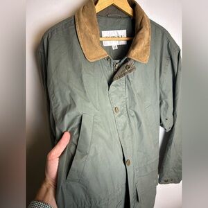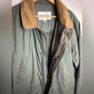Towne by London Fog Men's Green Jacket Tan Collar Barn Olive green zip Bomber