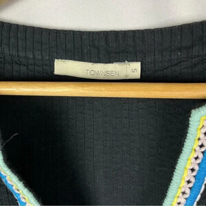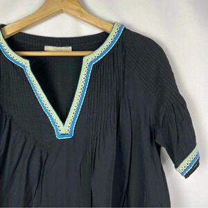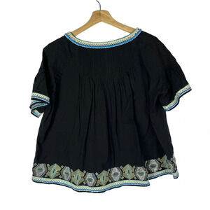 Townsen Black & Blue Embroidered Trim Short Sleeve Blouse S