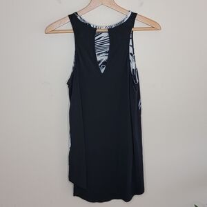 Townsen | Black & White Tropical Print High-Low Tank Top Size XS