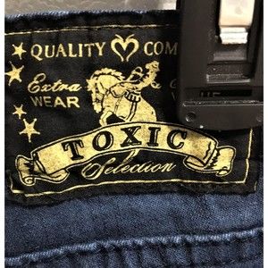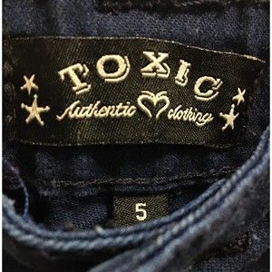 Toxic jeans, women's straight leg, size 5 low rise. Dark blue with a light wash pattern(see pics) with a flat waist measurement of 14 1/2 inches, inseam 29 inches, 37 inches from waist to hem.
