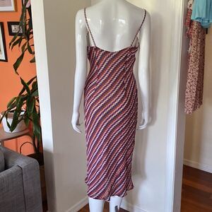 Toxic Red & Blue Chevron Print 90's Style Midi Dress Size 12