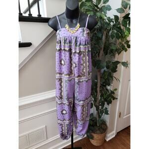 Toxik3 Jumpsuit Womens Small Purple Paisley Sleeveless Pockets Adjustable Strap
