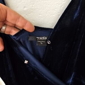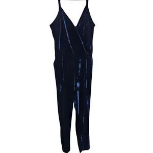Toxik3 Sleeveless Plunging Wrap Front Jumpsuit Velvet Navy Blue Women's Large