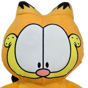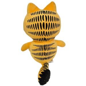 This is a stuffed plush orange cat with black stripes named Garfield from Toy Factory.
