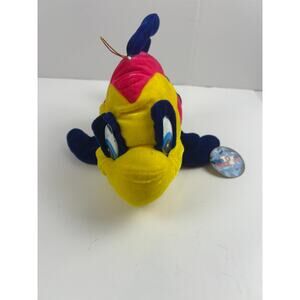 Bright and colorful Toy Factory tropical fish plush with blue, yellow, and red soft velvety fabric. Features big cartoon eyes and a fun, whimsical look. Perfect for collectors, carnival prize lovers, or as a playful ocean-themed décor piece.