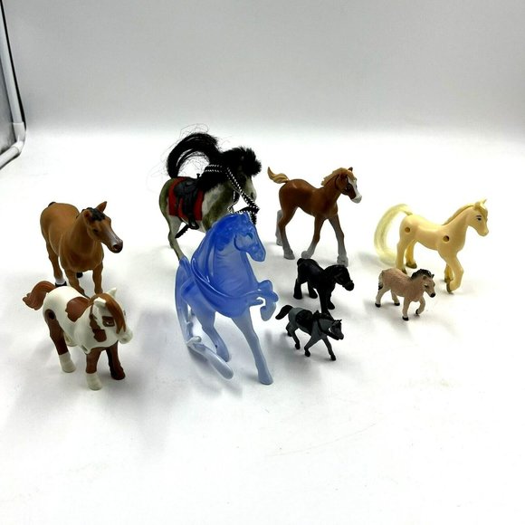 Toy Horses Lot of 9 Plastic Western Cowboys Model Figures Equestrian
