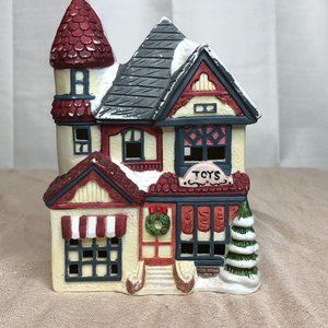 Toy Shop Store Christmas Holiday Village 1994 Collectible and lots of beautiful Detail. Date stamp 1994 on the bottom.