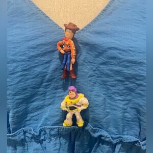 Toy Story Blue Tiered Zara Mini Dress with Buzz and Woody Buttons Women's- Small