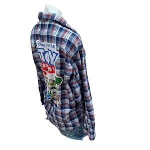 Toy Story Plaid Flannel Shirt LARGE Oversized Unique Woody Buzz Lightyear Disney