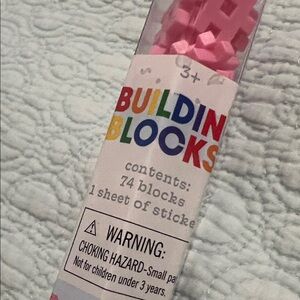 Pink flamingo building blocks set and a Lankybox donut-themed fidget spinner. Perfect for creative play.