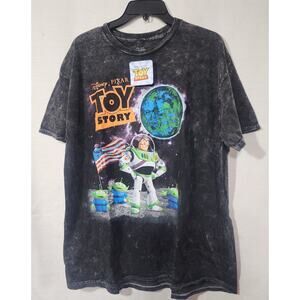 New with tags, great condition. The material is 100% cotton and mixture of white and black. Graphic is solid ,no damage.