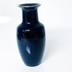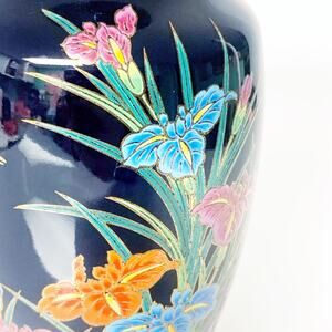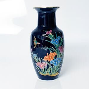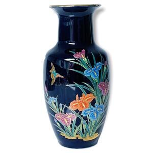 Toyo Japan Gosu Iris Cobalt Blue Flower Bird Painted Vase 8"