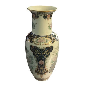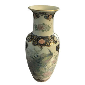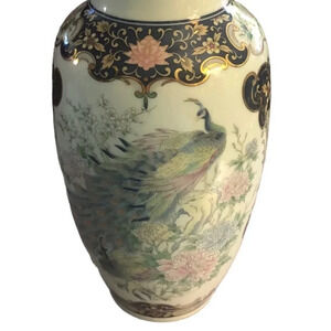 Toyo Japanese Porcelain 60s Decorative Vase Peacock Motif Cherry Blossom Pastels